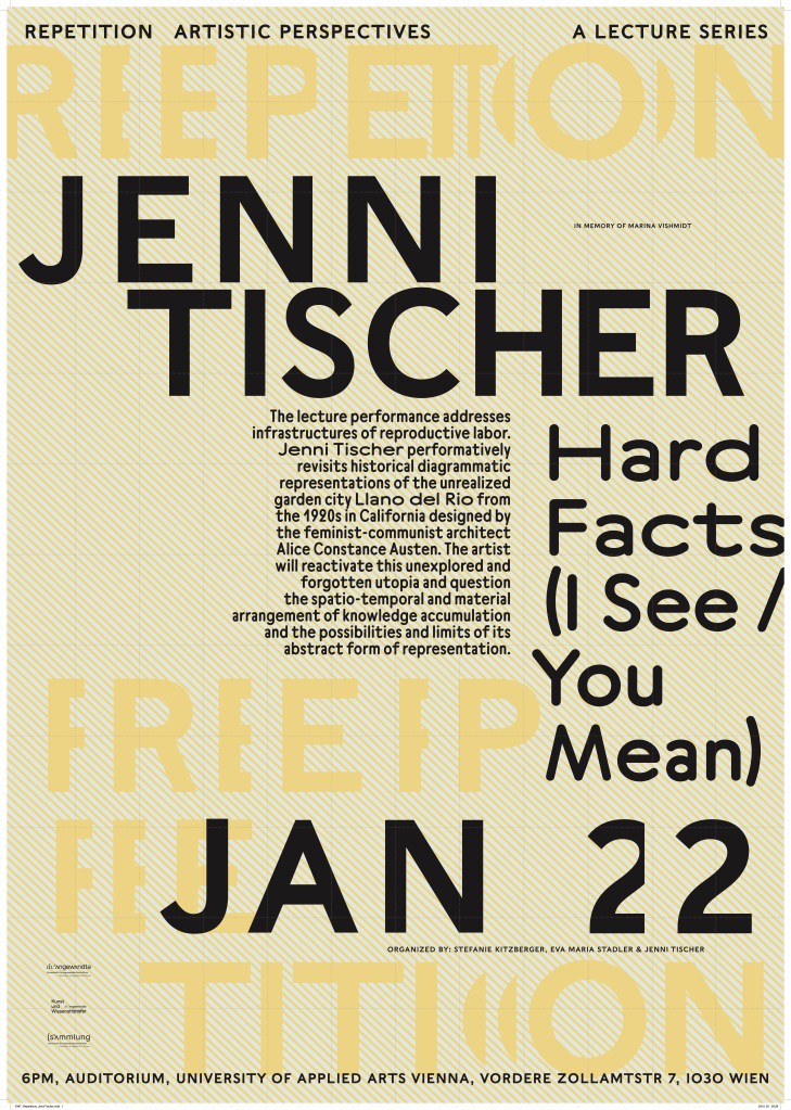 The lecture performance addresses infrastructures of reproductive labor. Tischer performatively revisits historical diagrammatic representations of the unrealized garden city Llano del Rio in California designed by the feminist-communist architect Alice Constance Austen. The artist will reactivate this unexplored and forgotten utopia and question the spatio-temporal and material arrangement of knowledge accumulation and the possibilities and limits of its abstract form of representation.