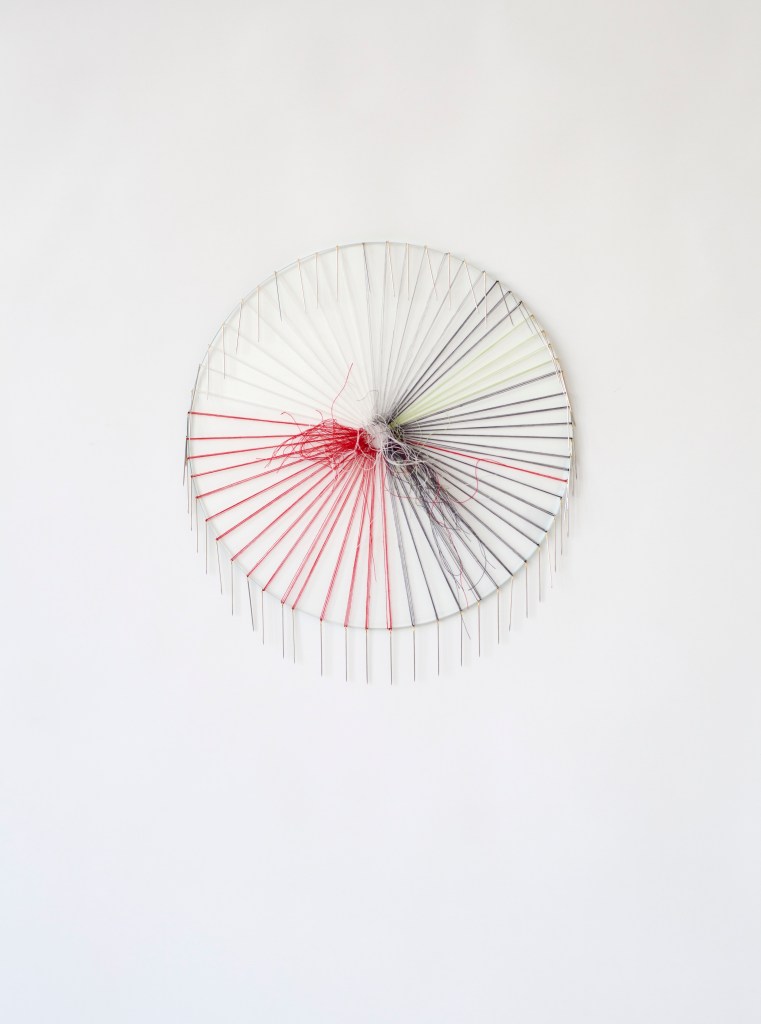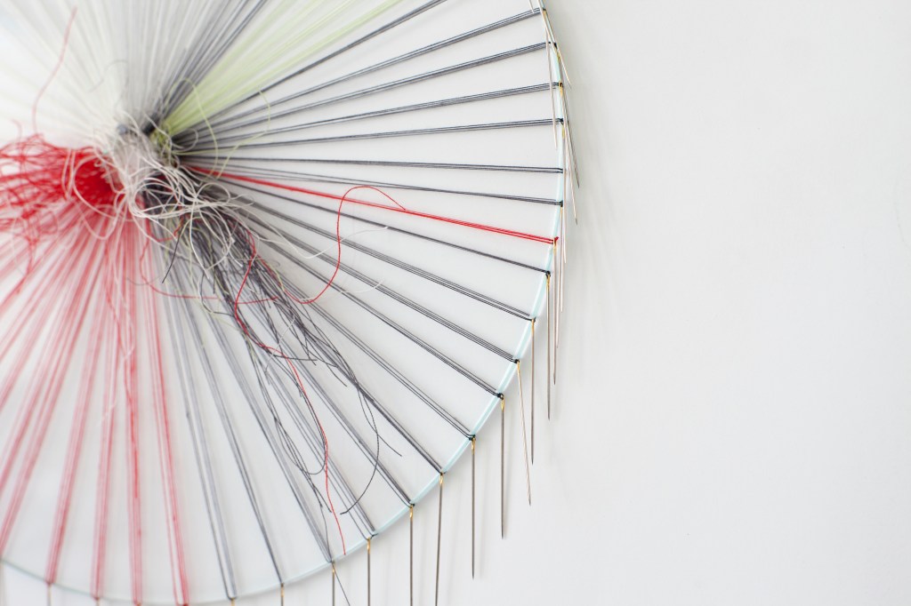 glass, yarn, sewing needles